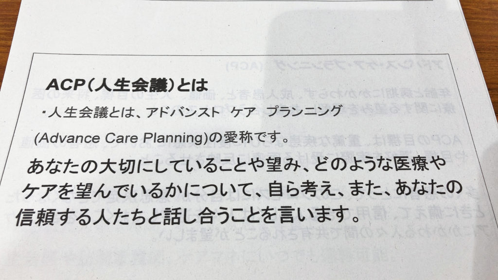 最後に、その人らしく人生を全うする方とのふれあいを大切にする医療の実践、そして「人生会議」を基本に、患者さんが望む医療を行なっていくことで患者さんに寄り添い、また、敢えて治療しないという選択も受け入れ、療養生活をおくることの重要性についてお話ししました。